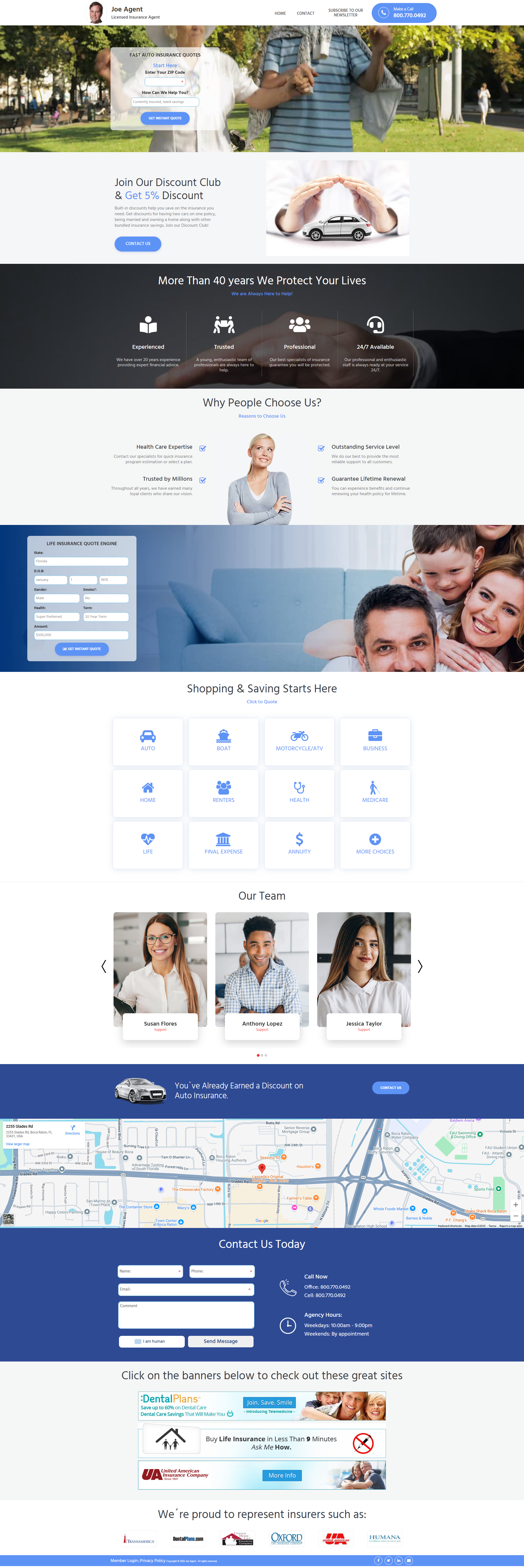 Insurance agents need leads. Our designs implement brilliant, yet simple technique to cause your visitor to input name, phone and email.